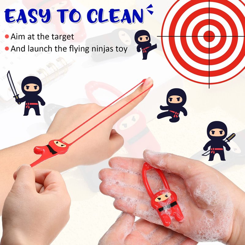 - Ideal Party Supply: our stretch ninjas are suitable for party time, to promote the party atmosphere, it is very easy to use, you just need to speak your index finger on it, the other hand pull the foot, aim to shoot into the room or specific objects and targets, very suitable for indoor activities