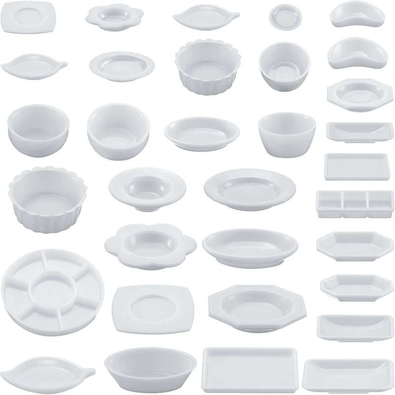 - What you will receive: package comes with 33 pieces dollhouse kitchen plastic plate dishes, enough quantity to meet your dollhouse decoration need; Doll house kitchen accessories are great gifts for lovers, family and friends on the birthday and other festivals