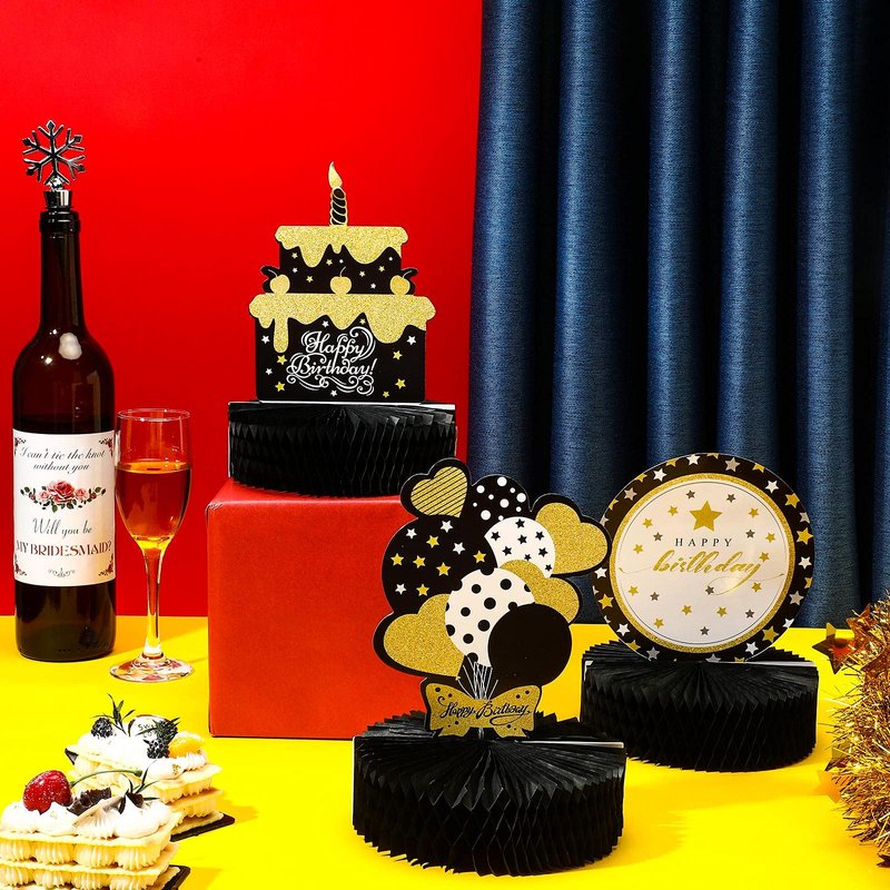 - The packaging includes: you will get 6 pieces of birthday party honeycomb centerpieces in various styles; The honeycomb table toppers with the cute designs and the proper size, are suitable for party decoration and bring shining and adorable party supplies