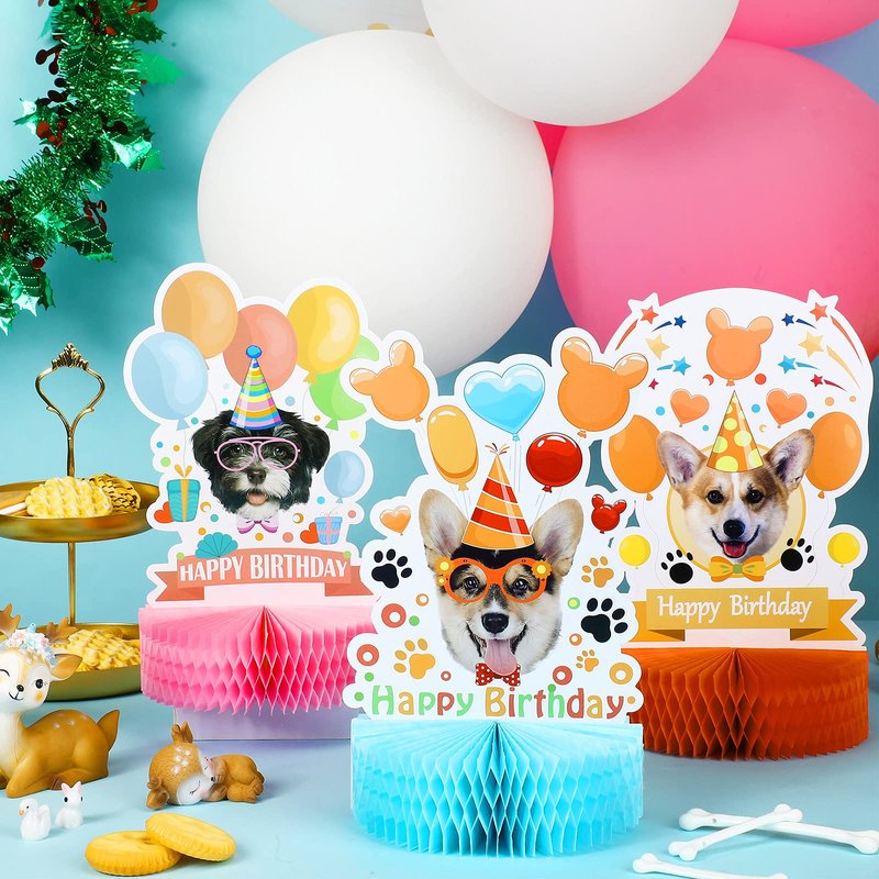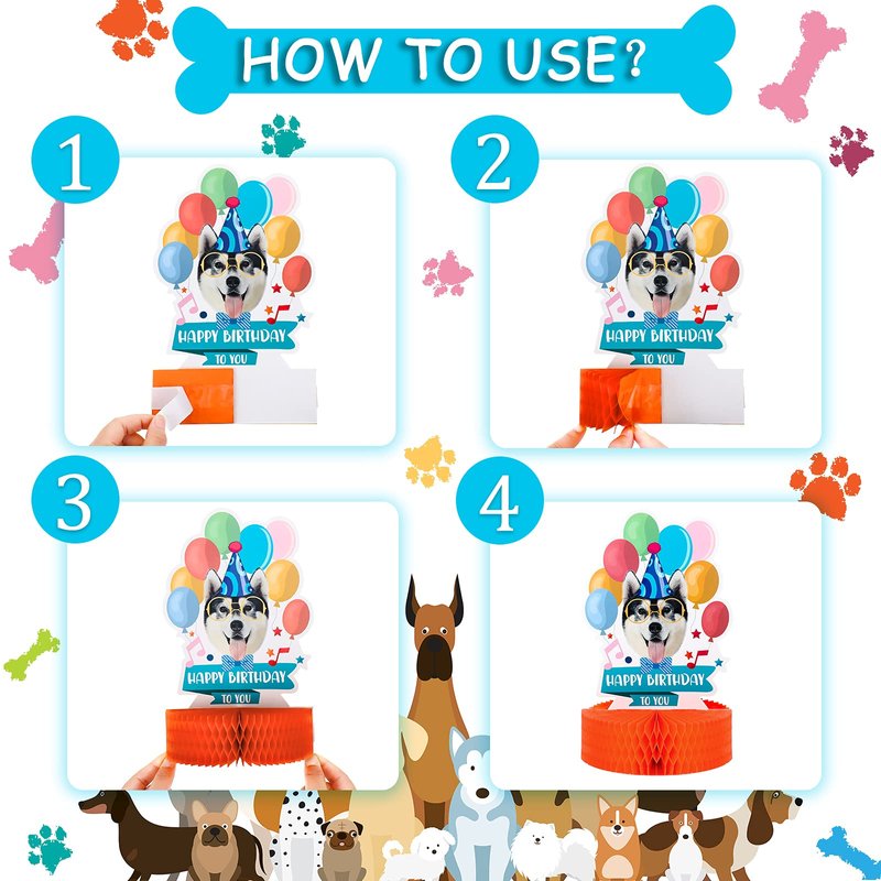 - Easy to assemble: you just need to take a few seconds to finish the assembly according to the picture, and then, put dog birthday honeycomb centerpieces on your favorite display area, which saves you time and effort to decorate your party; They are nice decorations for your dog's birthday party, leaving a good impression on your guests