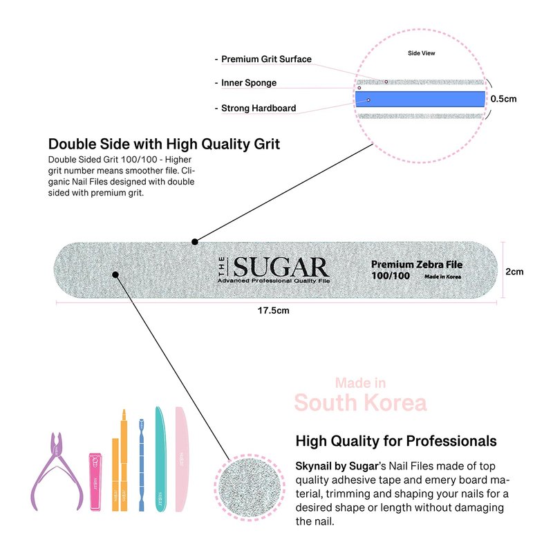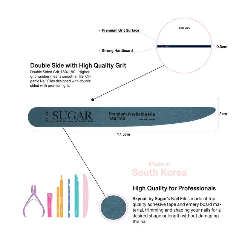 Skynail by Sugar 3in1 3PCS Nail File Set Grit 100/150/180 Professional Long-Lasting Reusable Double Sided Emery Board Nail Styling Tools for Home and Salon Professionals