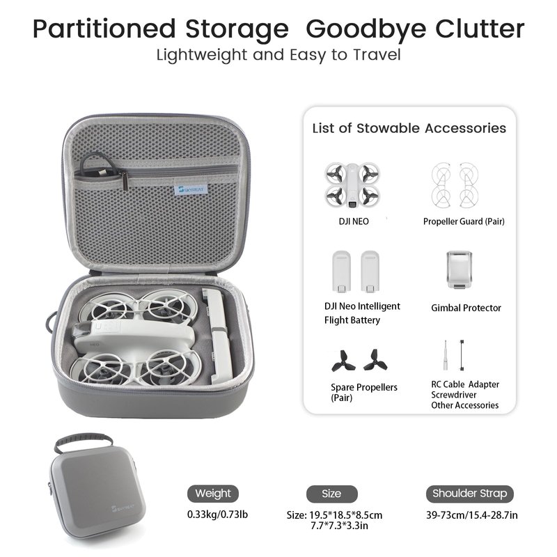 - 【Packing List】 1 x dji neo carrying case,1 x shoulder strap (NOTE: Only case, drone and other accessories are NOT included). Size: *cm/*in, Weight: *kg/*lb.