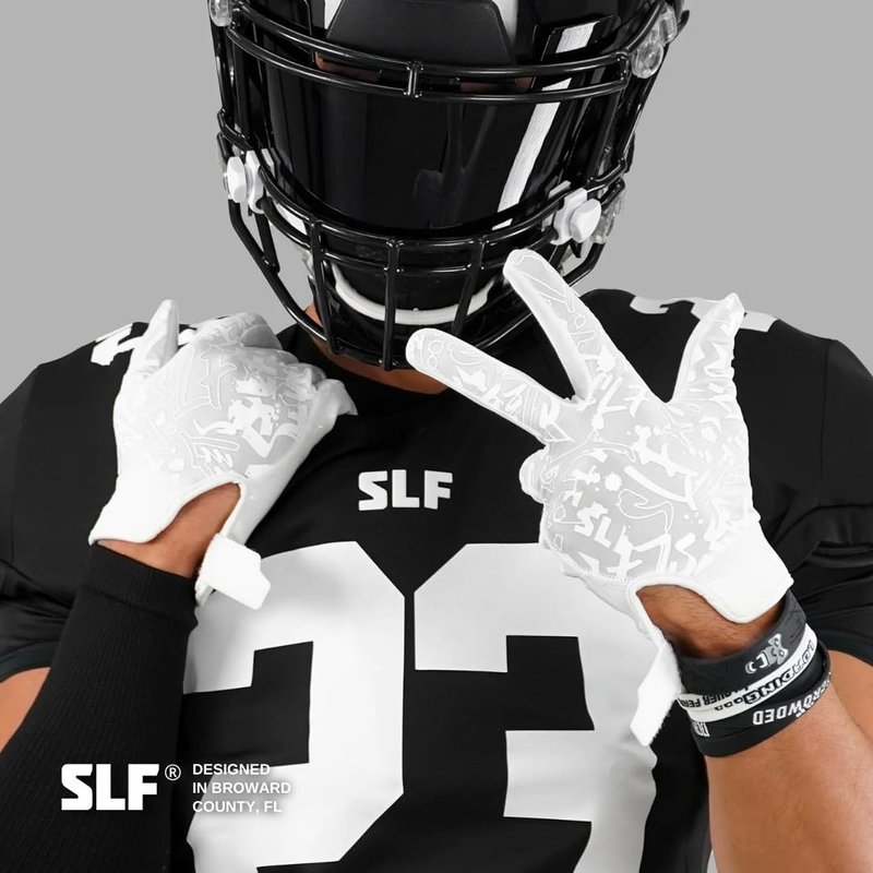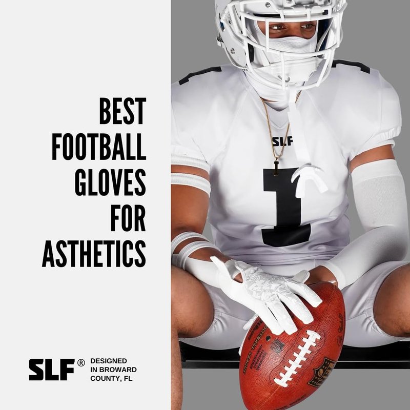 SLEEFS Football Receiver Gloves [1 Pair - Medium] - No Slip, Crazy Sticky Silicone Grip - Youth and Adult Sizes - White