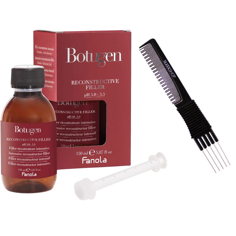 Sleekshop Comb + FanoIa BOTUGEN Botolife INTENSIVE RECONSTRUCTIVE FILLER, Hair Reconstruction System (w/SLEEKSHOP Premium Carbon Teasing Comb) (Reconstructive Filler (5.07 oz))