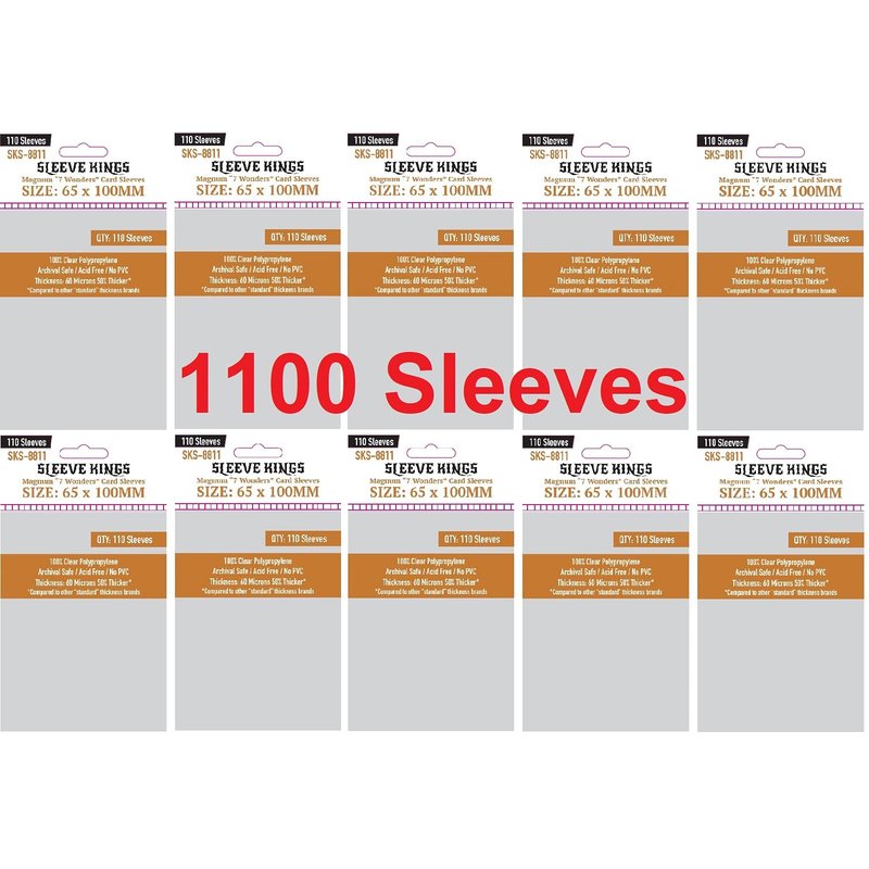 Sleeve Kings Magnum "7 Wonders" Card Sleeves 65 X 100 mm (10x110 Pack, 1100 Sleeves)