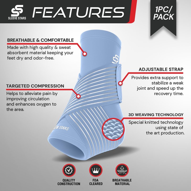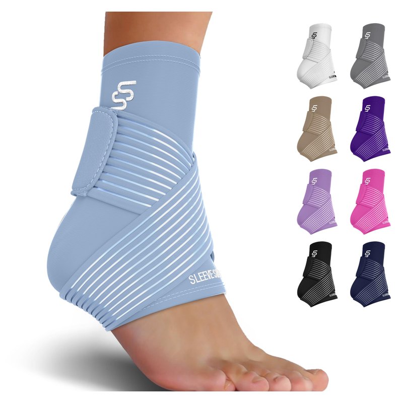 Sleeve Stars Ankle Brace for Sprained Ankle, Plantar Fasciitis Relief Ankle Support for Women, Ankle Compression Sleeve w/ Strap (Single/Light Blue)