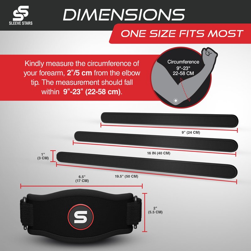 Sleeve Stars Tennis Elbow Brace for Men & Women, Brace for Tendonitis and Elbow Strap, Counterforce Band for Tendon Relief & Support for Forearm w/ 3 Straps Fits 9-23" (Single/Black)