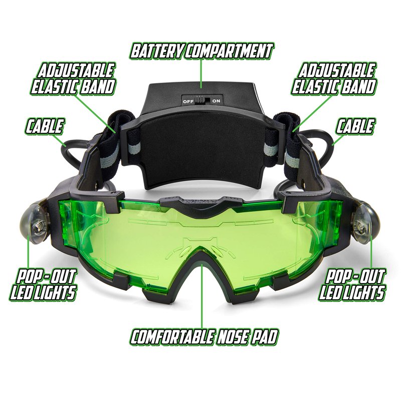 - ✓ SPY GOGGLES: Ensure your child's safety during nighttime adventures with Sticky Lil Fingers Spy Goggles. Equipped with pop-out LED lights that emit a cool blue light, this spy ninja kit provides visibility up to 25ft in the dark.