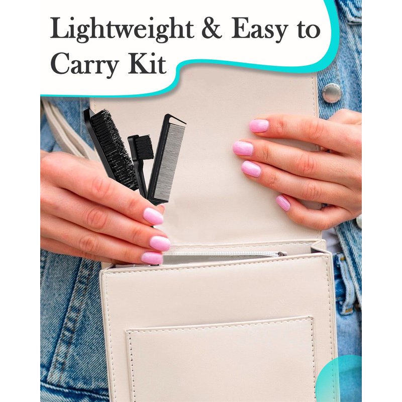 - 【Lightweight and Easy to Carry Hair Brush Set】Styling brush comb set is perfect for traveling or at home, edge brush's compact size and lightweight design makes it easy to put it in your carry-on bag as well as your makeup bag, pockets, so you can organize your broken hair at any time.