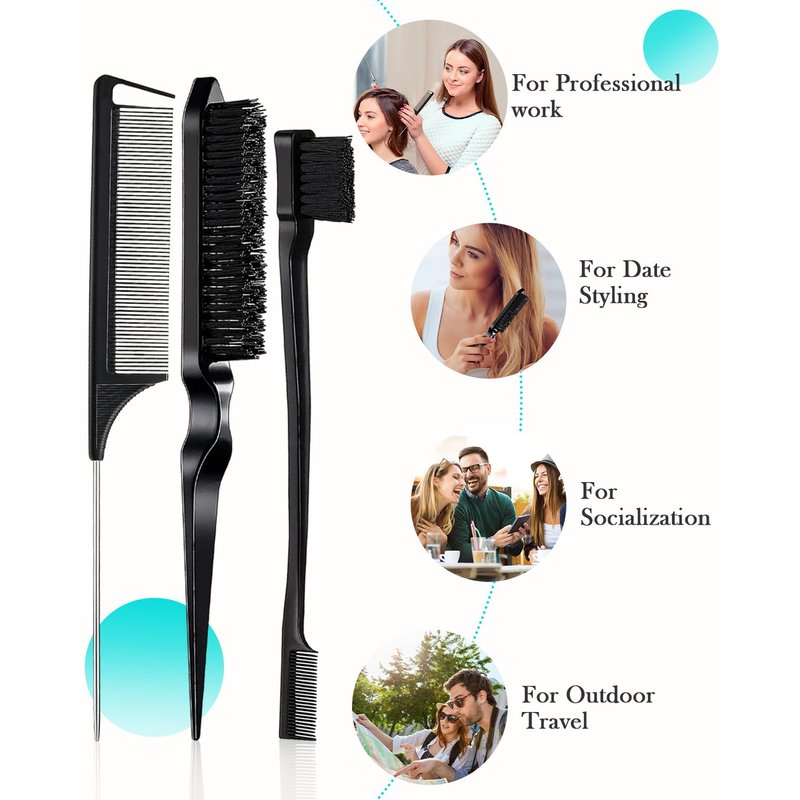 Slick back hair brush set--Rat tail comb & Teasing comb & Edge brush