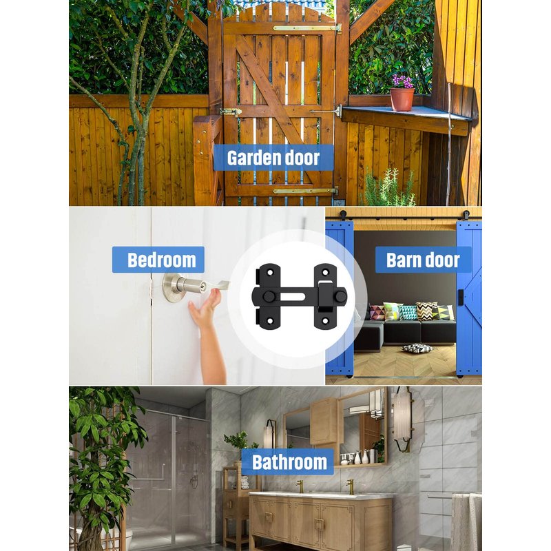 - 【Wide Application】: The barn sliding door locks are ideal for most door and cabinets, bedrooms, toilets, doors, garages, gardens, bathrooms, cabinets, kitchens, offices, hotels, window, pet locks. to save space and organize space, designed for all wooden doors.