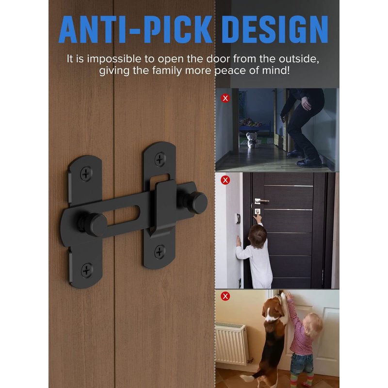 - 【Safety & Privacy】: Don't worry about children or adults breaking in accidentally,affecting the privacy space you need.The barn door lock specially designed for right angle doors ensures your privacy.