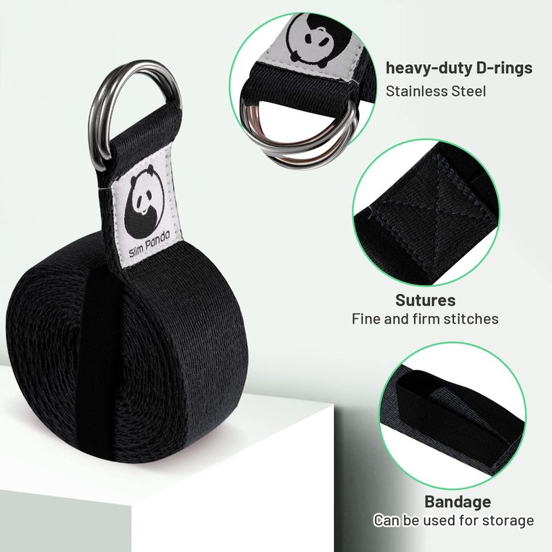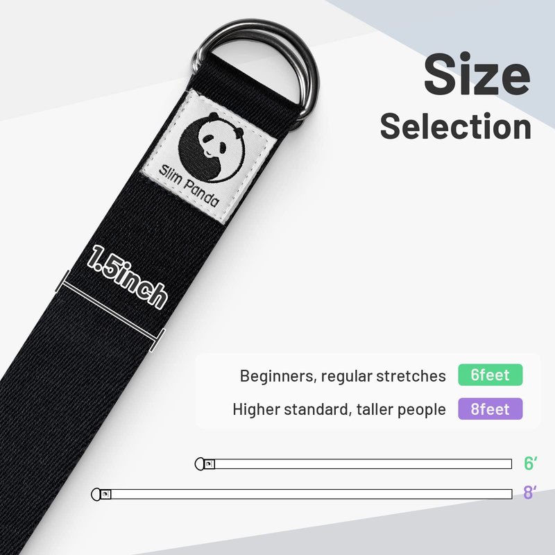 Slim Panda Yoga Strap Stretch for Yoga Pilates Ballet Dance, 8 feet/6 feet Cotton Yoga Belt for Stretching, Flexibility, Black, Purple, Gray (Black, 8.00)