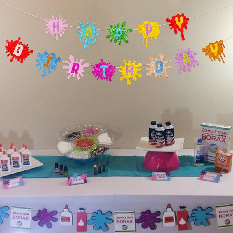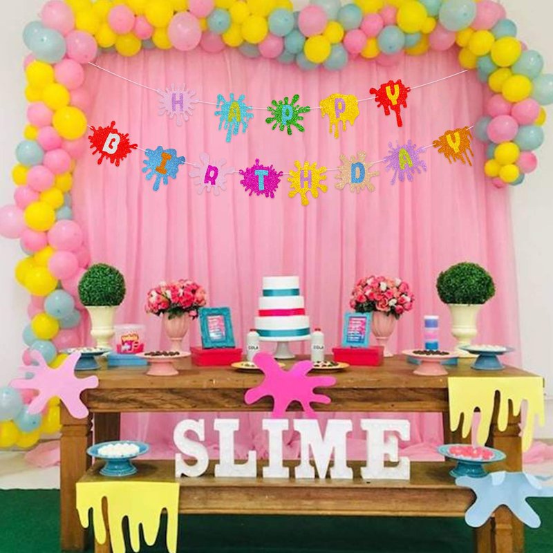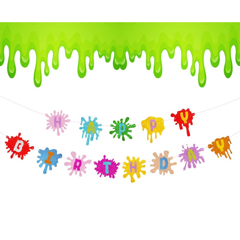 - What you will get: 1 Set colorful glitter slime happy birthday banner, perfect for slime birthday party decorations,worth buying it!!