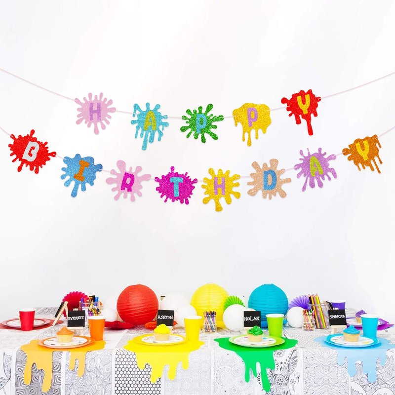 - Wide range of usage - This art happu birthday banner is great for photo props. The perfect banner for kids painting party, art theme party, kids craft party, toddler paint party and unicorn slime party.