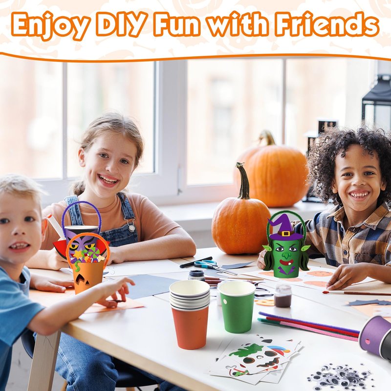 - Halloween Themed Craft Kit: unleash your imagination and creativity with this Halloween gifts craft kit; Suitable for keeping the kids engaged and active, or for adults to join in the fun, too; Embrace the spirit of Halloween and make your party an interactive experience that both kids and adults will enjoy; You can attach the card directly to the cup with adhesives according to the patterns
