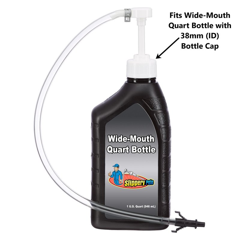 Slippery Pete - Fluid Pump for Wide-Mouth Quart Bottles - 8cc per Pump Stroke and 3rd Hand Adapter, Transfer Gear Oil, Transmission and Differential Fluid (38mm)