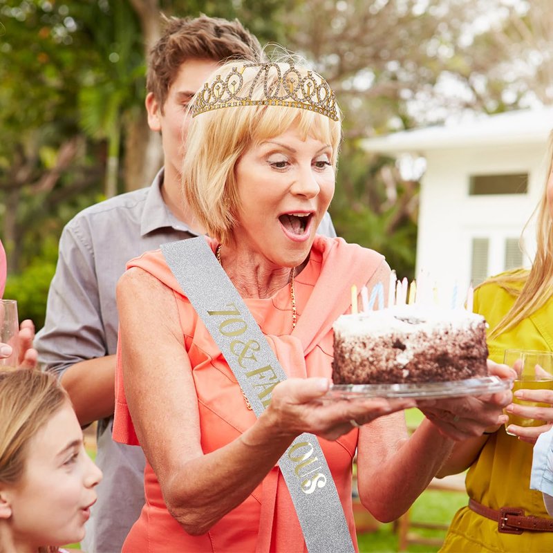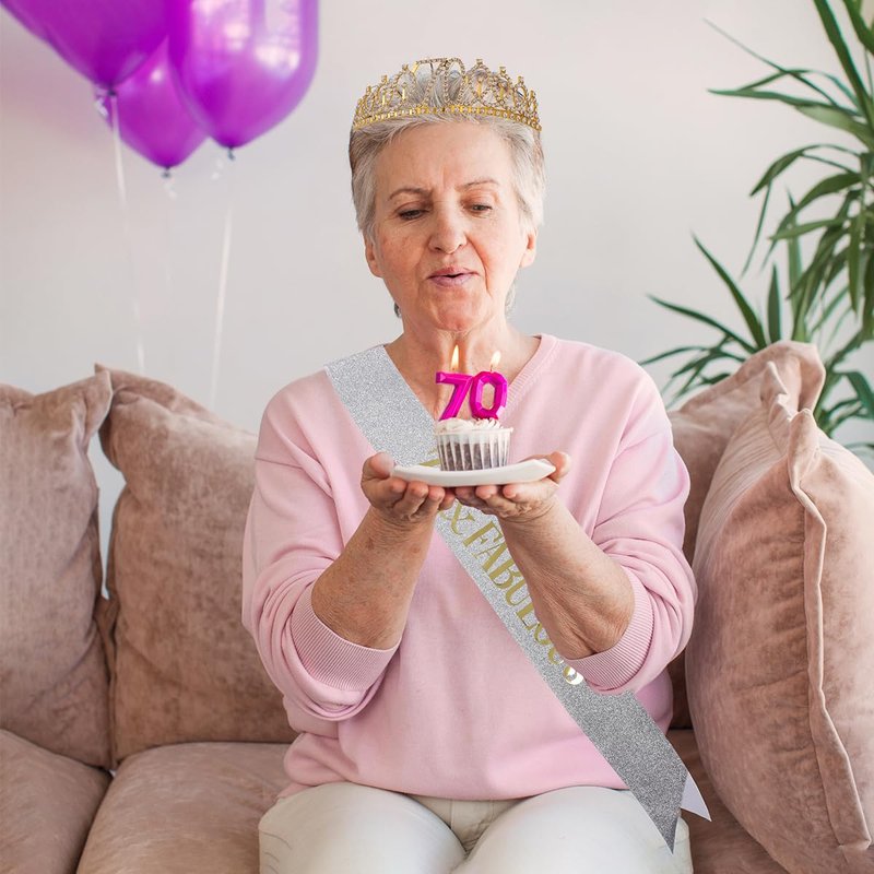 - 【70th Birthday Gifts for Women】70th is not younger anymore, pick a youthful gift to make them happy and leave a wonderful record;the crown and birthday sash, just to meet these, believe us this is an excellent gift choice for the 70-year-old woman; she will be happy to wear this during her big day;