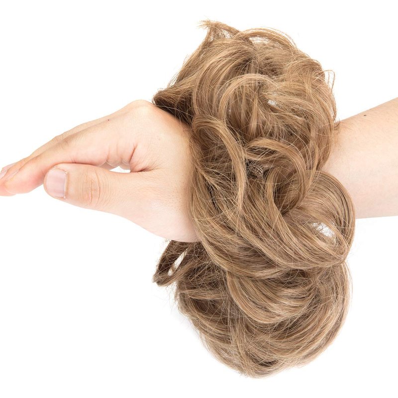 Scrunchie bun up do hairpiece with elastic hair tie, secure and comfortable to wear, perfect bride hair extensions,High quality bun hairpieces that look like real hair. This SLLIE heat-resisting synthetic fibre hair bun extension creates an elegant ponytail accent that can be worn for a prom, wedding, or evening out.Our hair is soft and comfortable and Perfectly increase your hair volume,which makes you transform your look in seconds. Besides,the first time you used,slight hair loss is a normal phenomenon just like huamn hair and When you got the item,it maybe a bit messy because it was in a packdge.You can comb it with your finger gently,then it will look as beautiful as the picture. Care Tips: 1) Wash with cold water. 2) Add a dash of shampoo and wash gently. 3) Rinse thoroughly in warm water, again working from the top down. 4) Never twist, wring, squeeze your hair extension, allow it to air dry. 5) Do not use curling irons, blow dryers, or hot styling instruments.