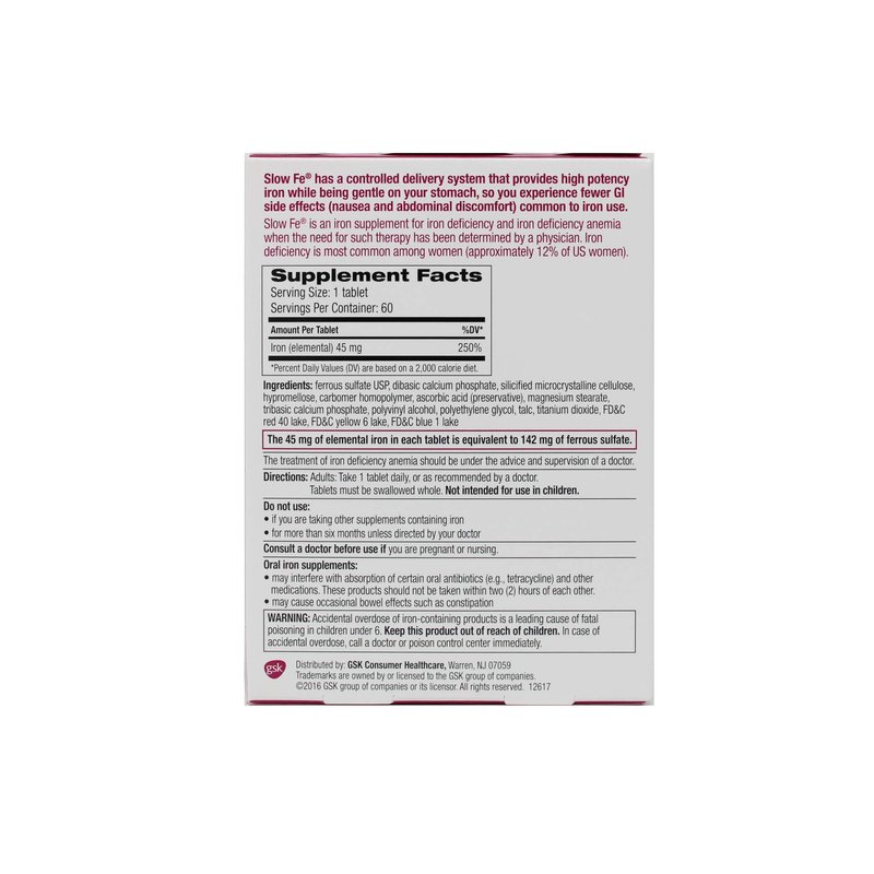 - One 60-count bottle of Slow Fe 45mg Iron Supplement for Iron Deficiency