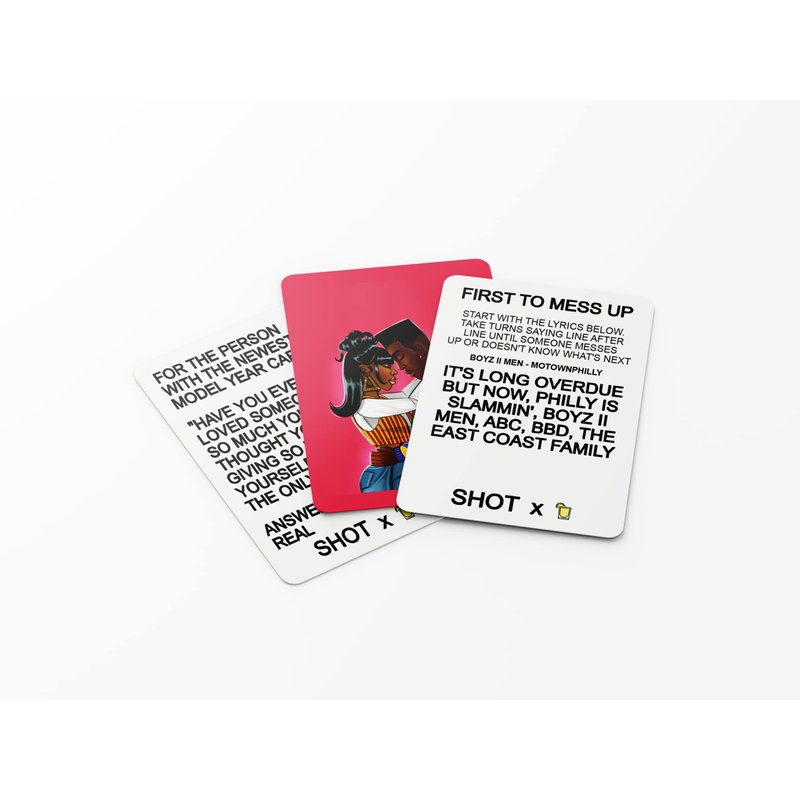 - How To Play | Shuffle The Black 90s RNB Music Urban Trivia Drinking Cards Well. Starting Clockwise, Take Turns Drawing A Card From The Top Of The Deck. When It’s Your Turn, Read The Card Out Loud, And Just Follow The Instructions On The Black Drinking Party Card Game. You'll Find Black R&b Music Trivia Cards That You Give Someone An Extra Drink Or Help Someone Out. It’s Most Fun With 3 To 20 Players. Lewisrenee Provide Some Of The Best Black Owned Drinking Games For An Adults Party.