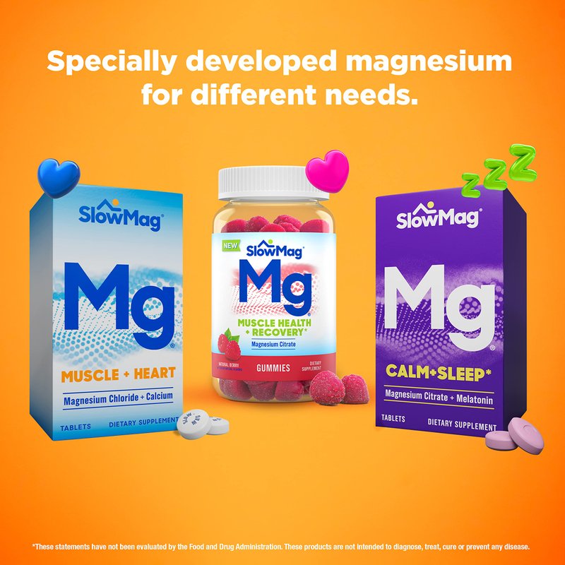 SlowMag Muscle + Heart Magnesium Chloride with Calcium Supplement to Support Muscle Relaxation, Occasional Muscle Cramping & Heart Health, High Absorption, 120 Count