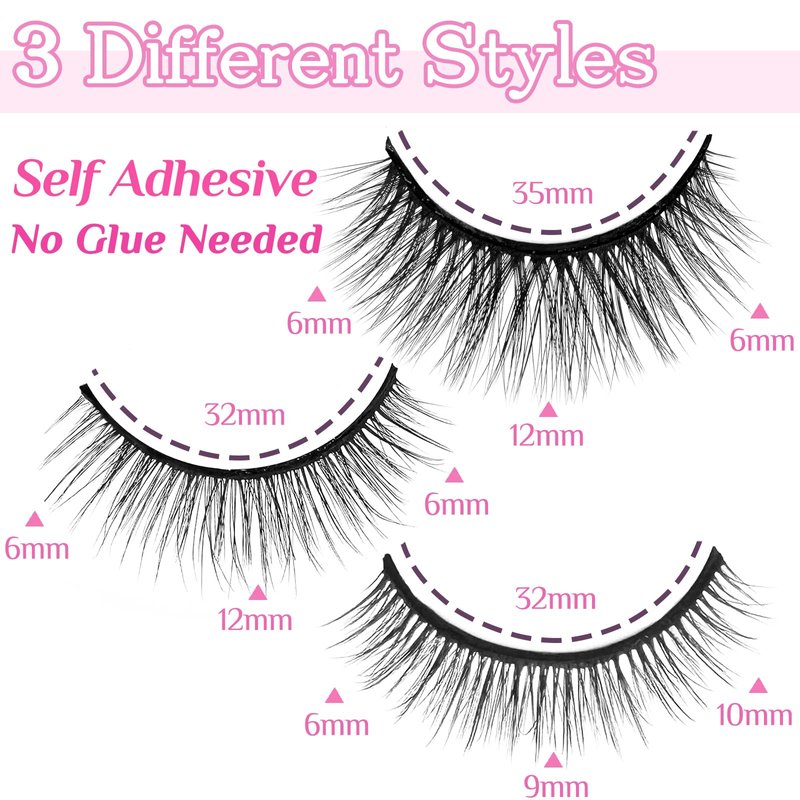 - NO GLUE AND EYELINER NEEDED -- This feature is perfect for quick and easy application.And there are 3 styles in one false eyelashes kit.Great for beginners.