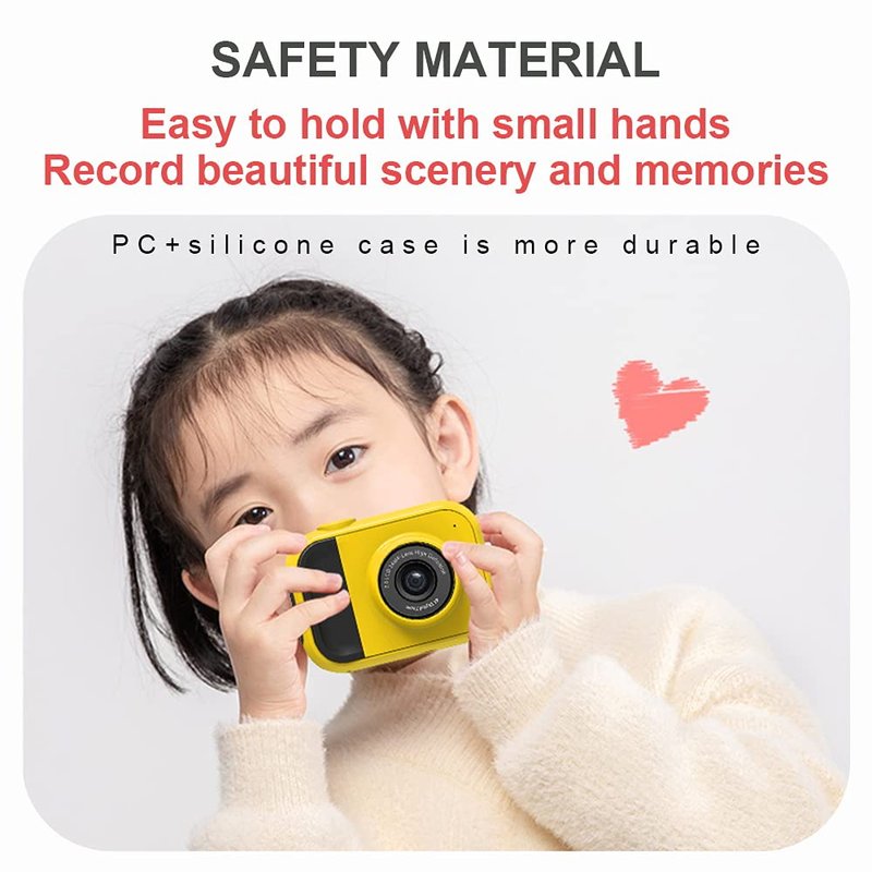- Safety Material: Made of environmentally friendly silicone material, safe and non-toxic, not easy to break when dropped, the body only weighs 85g, designed with a shoulder strap, easy to carry, a camera specially designed for children