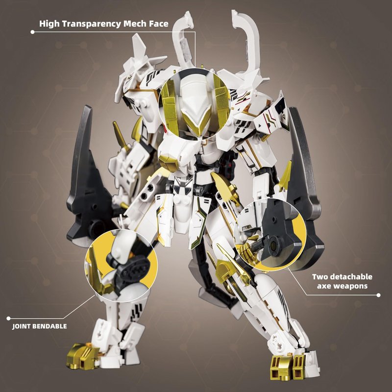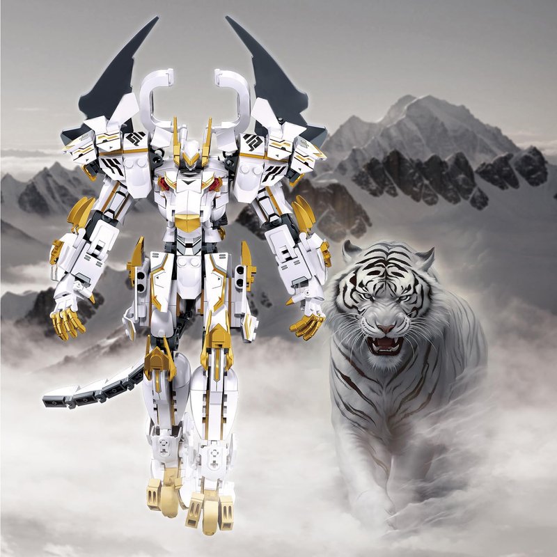 - Mech Building Toys - The design of this white tiger mecha is inspired by the mythological story "Classic of Mountains and Seas". It combines the characteristics of the tiger and the shape of the mecha, giving mech enthusiasts a different visual and construction experience.