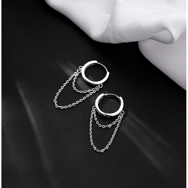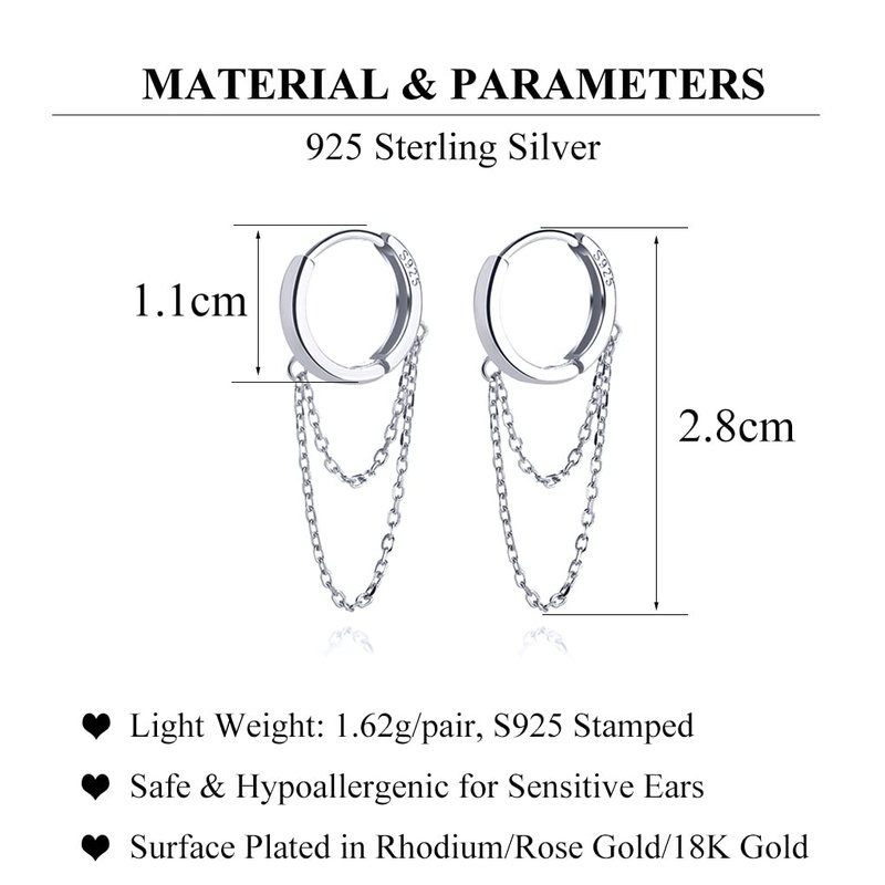 SLUYNZ 925 Sterling Silver Hoop Earrings for Women Teen Girls Minimalist Hoop Earrings Huggie Dangle Chain Tassel (A-Silver1)