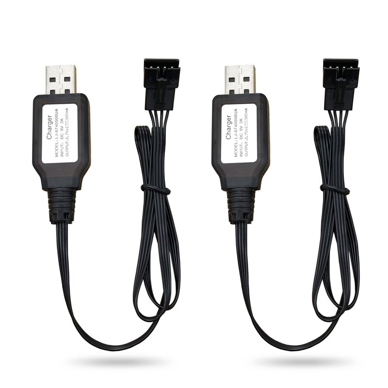SM-4P Charger for RC Car/Boat/Gel Ball Blaster 7.4V Li-ion Battery, USB Charging Cable 2-Pack