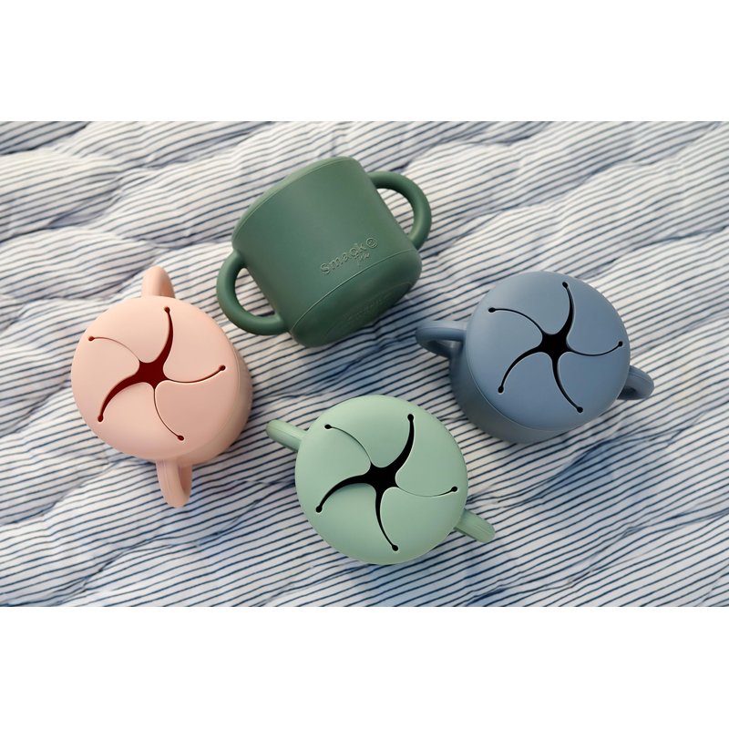 Designed with two small handles for an easy grip for the little hands, Our fun Snack cup is spill-proof for any baby to take on the go. The soft opening ensure baby's hands can slide easily in and out, while keeping food securely inside.