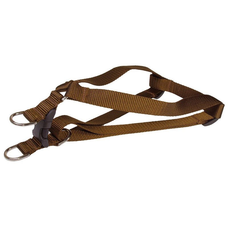 - Small Brown Nylon Webbing Dog Harness: 5/8" wide, Adjusts 15-21" Made in USA