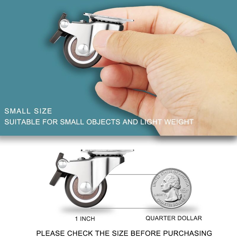 Perfect for Small Projects: With a 100-pound load capacity, these cute mini 1-inch caster wheels are perfect for small furniture moves, including dressers, crates, under-bed storage, shoe bins, toy bins, cabinets, plant stands, bookshelves, easels, etc.