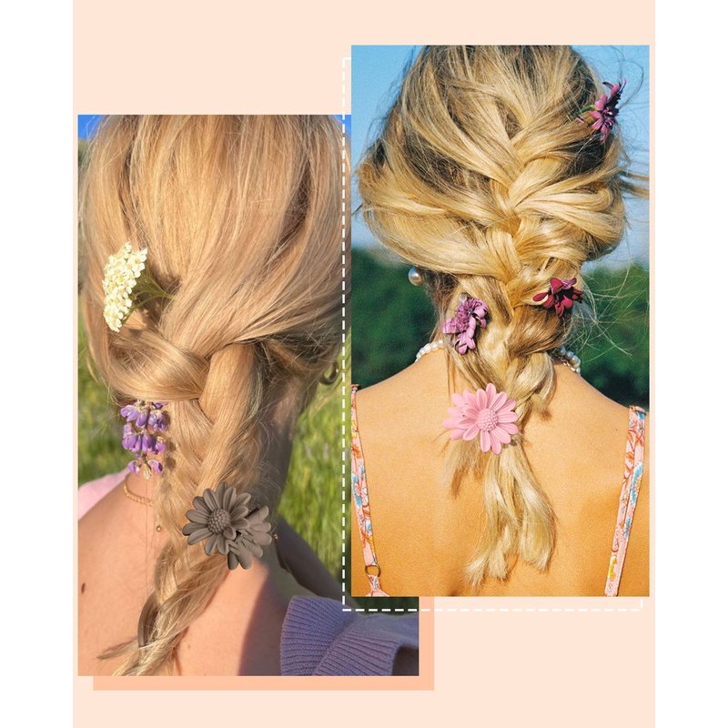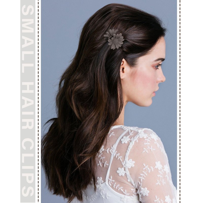 - SMALL FLOWER CLAW CLIPS FOR MANY HAIRSTYLES - The kids' small hair clip claw can be used on the forehead to hold broken hair, on the side to hold the hair in place, in a half-up-do, or around a ponytail as decoration, etc.
