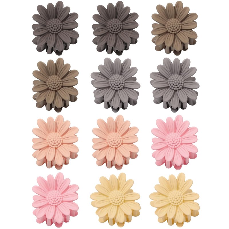 Small Hair Clips Flower Hair Claw Clips for Women 12pcs Matte Small Claw Clips Cute Hair Clips for Girls (Flower - Yellow/Pink/Grey/Coffee/Brown)