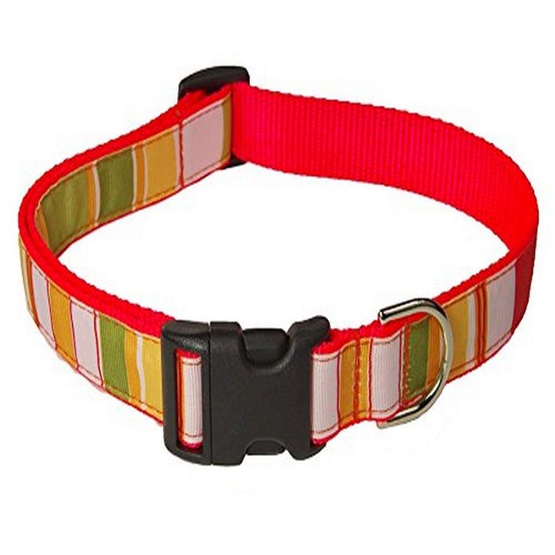 - Small Orange/Multi Stripe Dog Collar: 5/8" wide, Adjusts 10-14" - Made in USA.