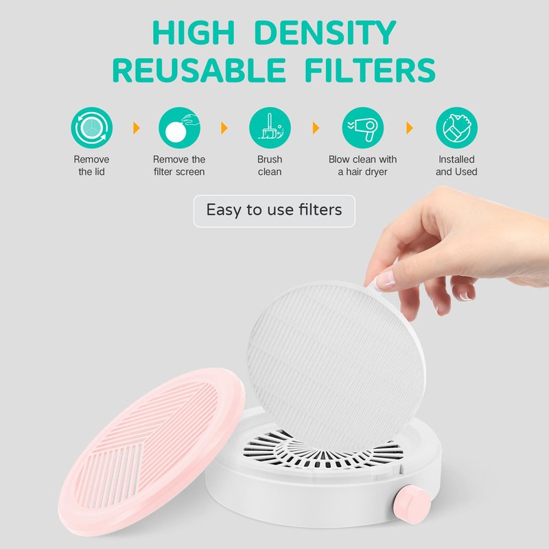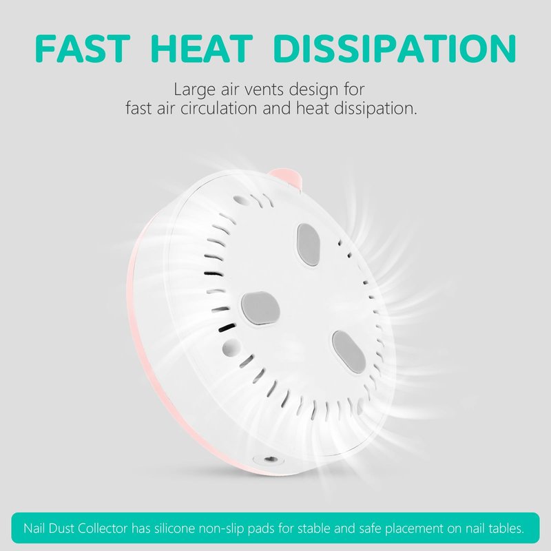 - POWERFUL SUCTION: The NDC9 nail dust collector features an advanced turbo fan that spins up to 4500 RPM. When performing nail polishing nail surfaces or other nail art processes, the NDC9 nail dust collector can quickly collect this nail dust and keep the work area clean.