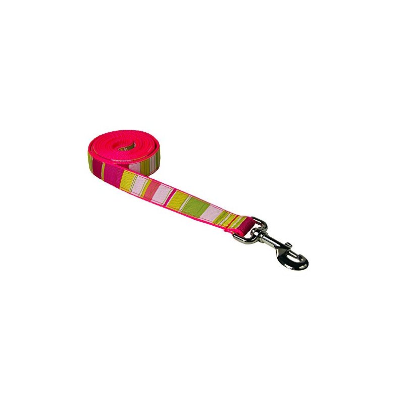 - small Neon Pink/multi stripe dog leash: 3/4" wide, 4ft Length - made in USA.