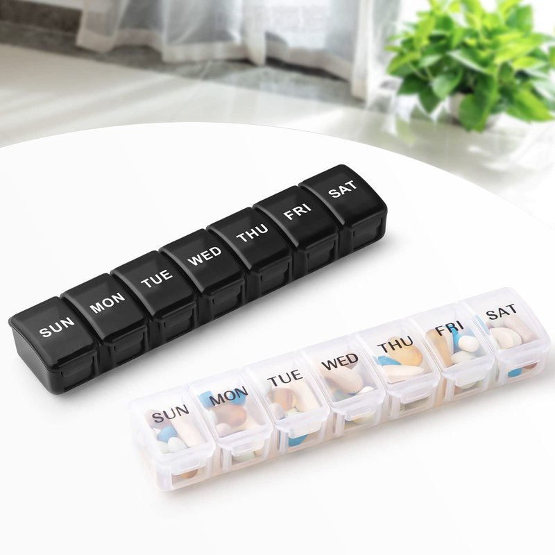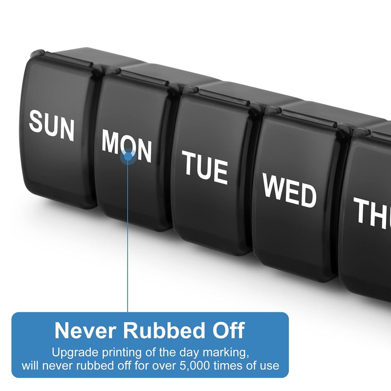 · Our weekly pill container is made of food-grade PP plastic, BPA-free, safe for medical use.
