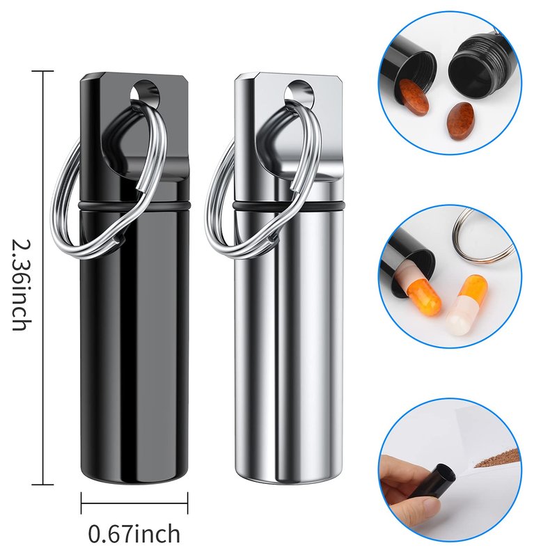 - 【Multi-function】: The pill holder keyring not only keeps your daily medication but it also able to keep your emergency money close while on the go, as well as store your notes, earplugs, toothpicks, spices or anything else that you would like to hide and protect