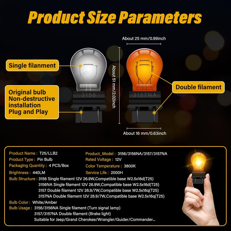 Small Stones 4PCS 12V P27W 3156NA 3456NALong Life Miniature Bulb Automotive Brake Lamp Turn Signal Lamp