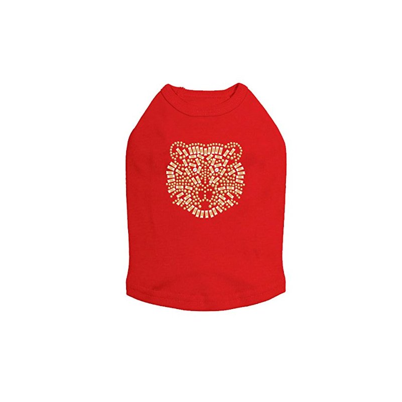 Small Tiger Face - Dog Tank - Dog Tank for small and large dogs. 3" x 3" design with gold nailheads, rhinestuds, & rhinestones.