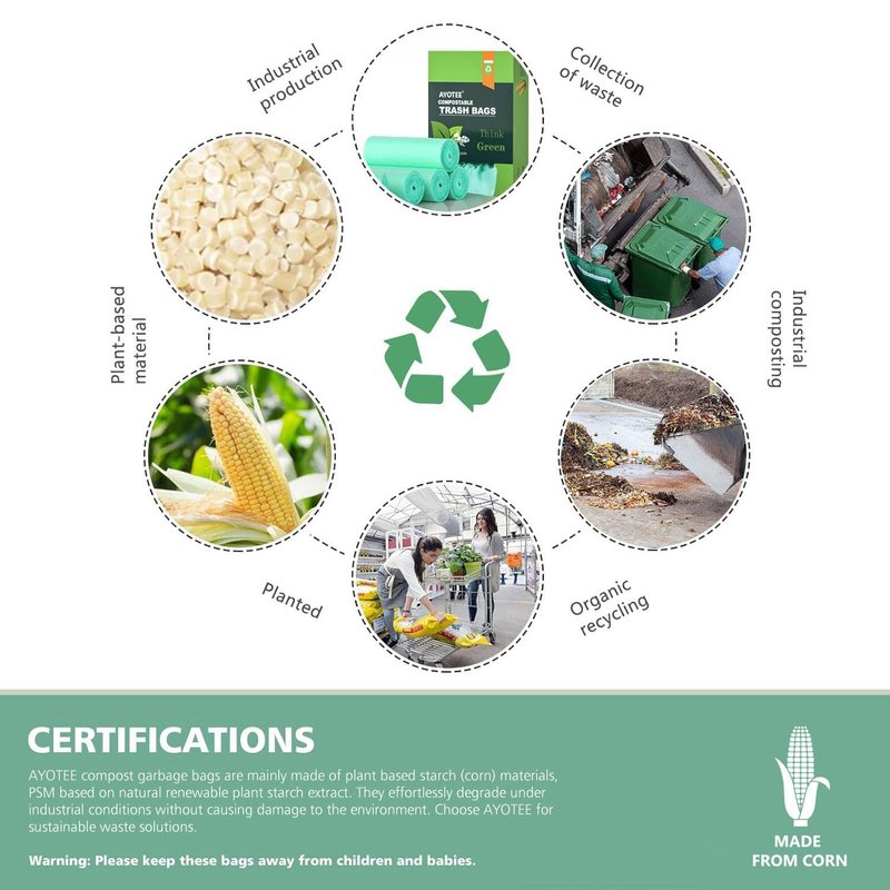 - Small Compost Trash Bags: The main materials for our small trash bags are made of plant starch extract(PSM). Certified compostable and meeting the standards of ASTM. Come in a practical box which makes it easy to draw out and store these small garbage bags Small Compost Trash Bags: The main materials for our small trash bags are made of plant starch extract(PSM). Certified compostable and meeting the standards of ASTM. Come in a practical box which makes it easy to draw out and store these small garbage bags
