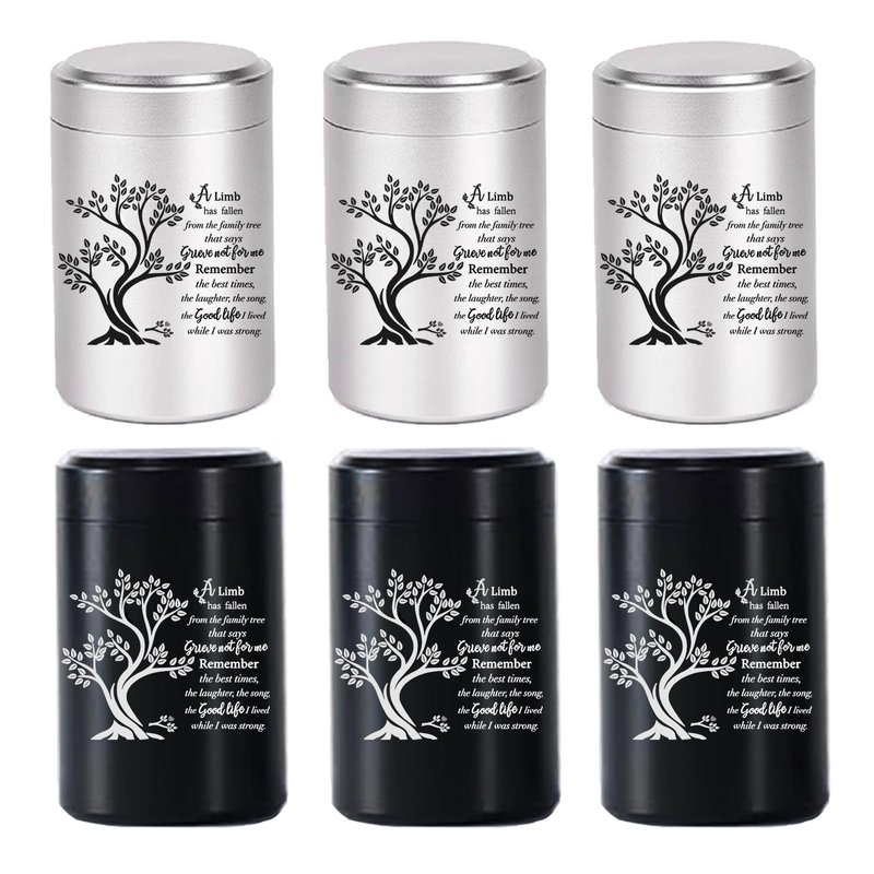 - 【Small urns set of 6】:This is a set of 6 mini urns, printed with the design of a tree of life on the front of the urn. It is a symbol of eternal love and respect, used to commemorate the person you love and provide comfort during the commemoration period.