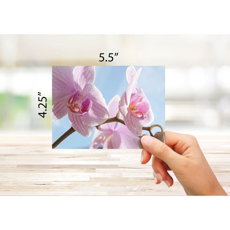- 💮High-Quality: Our Orchid cards are printed on high-quality, heavy-duty paper that feels soft to the touch and provides a smooth writing surface. They measure 5.5”x4.5” and include envelopes.