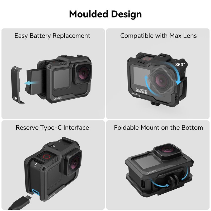 - For GoPro Hero12 / 11 / 10 / 9 Black: The Cage 3083C is an all-in-one full cage which is compatible with microphones, LED lights, providing a perfect Vlog filming solution.
