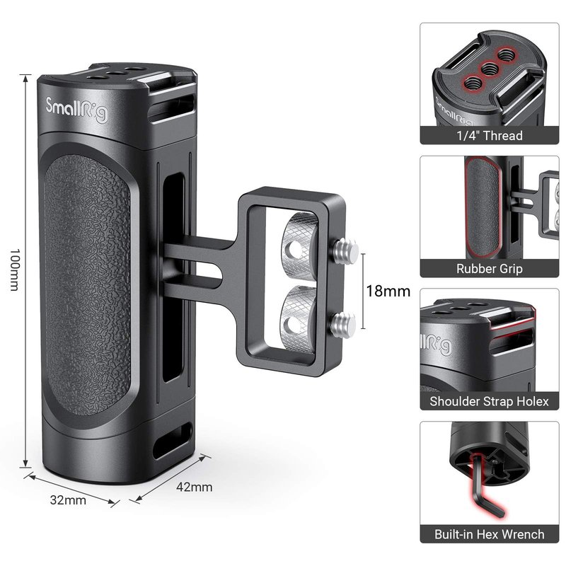 - 【SIDE HANDLE FOR CAMERA CAGE】SmallRig Mini Side Handle 2916 is designed for the cages of mirrorless, digital camera, and other small cameras. Two 1/4"-20 screws are fixed to the side of your camera cage. SmallRig 2916 Any cage featuring two 1/4"-20 threaded holes with 18mm distance on the side, such as SmallRig Cage 2999, 2493, 2087 etc.