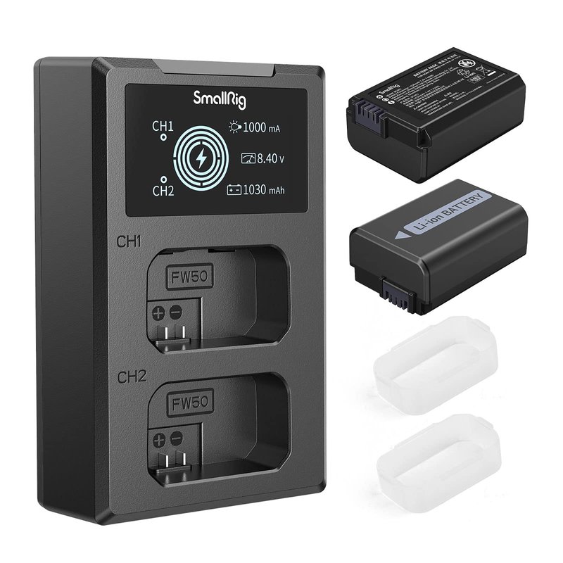 SmallRig NP-FW50 Replacement Camera Batteries (2 Pack) & LCD Display Charger Set 3818