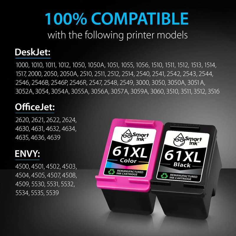 - Easy to Install and Use: All compatible printers instantly recognize Smart Ink HP ink cartridge 61 and work flawlessly